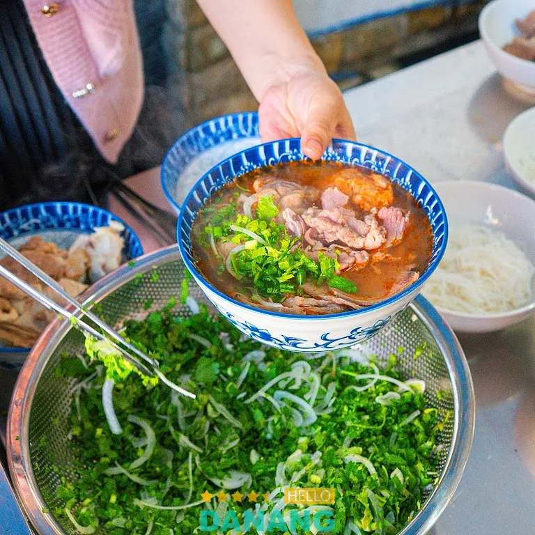 Quán Bún bò Huế Mụ Rơi được biết đến là một địa chỉ quen thuộc với những tín đồ yêu thích món bún bò Huế tại Đà Nẵng. Với nước dùng ninh từ xương bò, kết hợp cùng các gia vị đặc trưng như sả tươi, mắm ruốc Huế, và ớt tạo nên một hương vị đậm đà, cay nồng rất riêng biệt.
