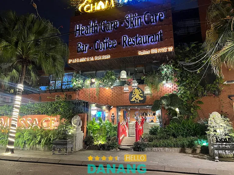 Cham Spa & Massage là một trong những spa cao cấp tại Đà Nẵng, hoạt động lâu năm trong lĩnh vực chăm sóc sức khỏe và sắc đẹp. Sau khi điều chỉnh địa giới hành chính, địa chỉ hiện tại của cơ sở là: 05 Lê Quang Hoà, phường Hoà Xuân, Đà Nẵng