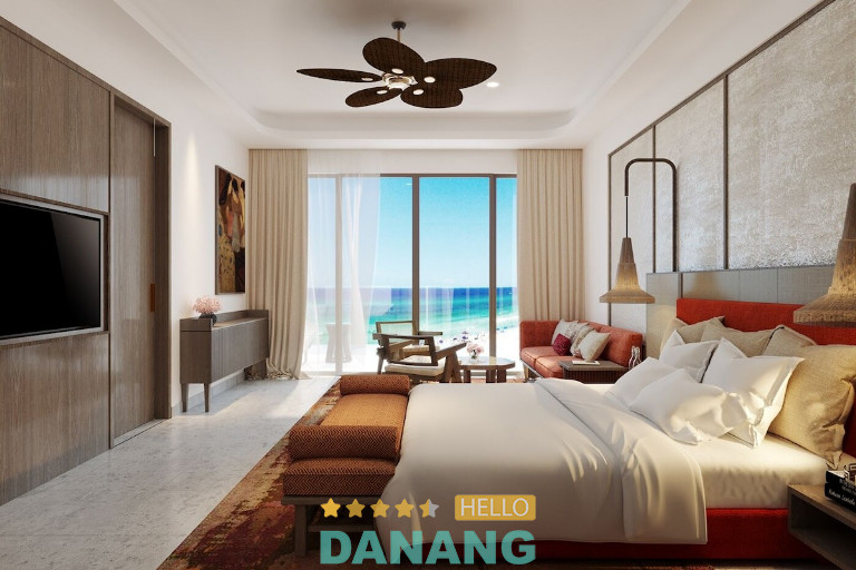 Nếu có thể dậy sớm, bạn sẽ được ngắm bình minh “đắt giá” tại bãi biển riêng của resort. Khoảnh khắc mặt trời ló dạng sau đường chân trời biển tạo nên khung cảnh rực rỡ mà ai cũng nên trải nghiệm một lần. Sau đó, dùng bữa sáng buffet và nhâm nhi ly cà phê trong không gian mở đầy thư thái.
