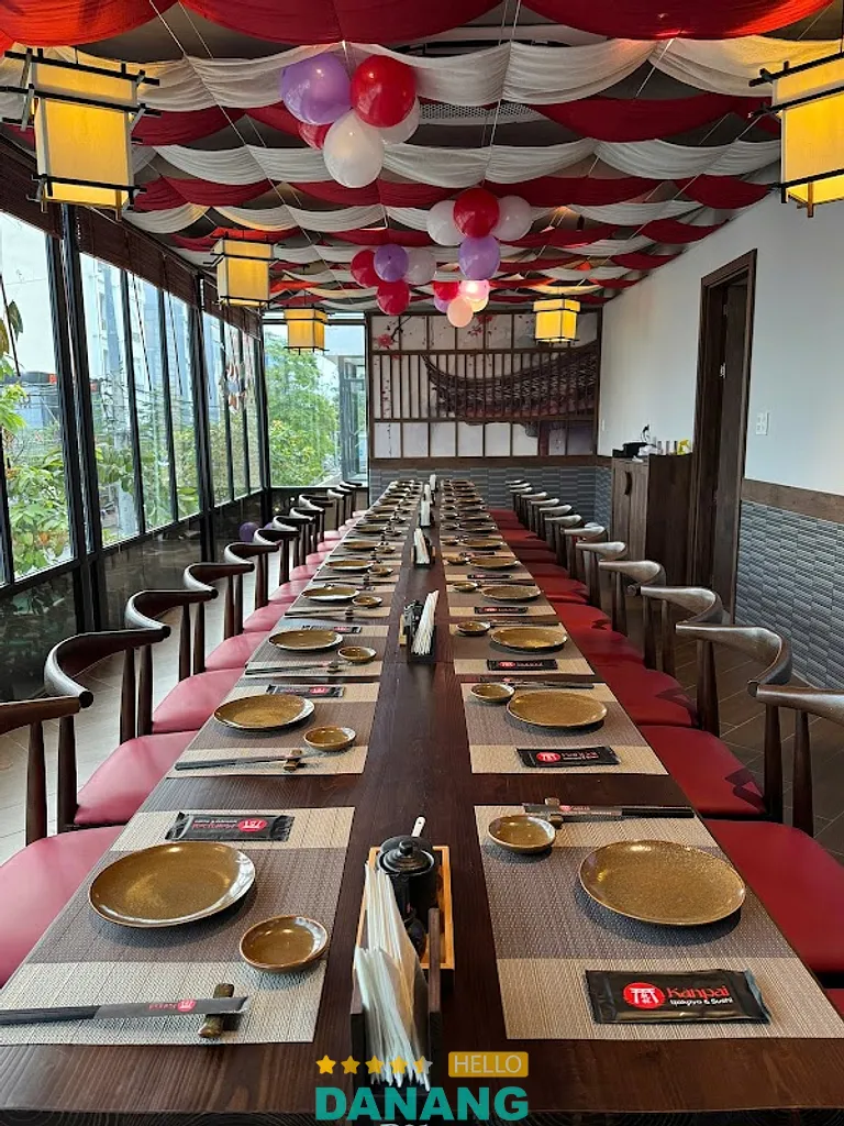 Tọa lạc trên tuyến phố Đỗ Bá, gần bãi biển Mỹ Khê, Kanpai Izakaya & Sushi là một trong những nhà hàng Nhật Bản nổi bật tại khu vực biển Đà Nẵng. Nhà hàng định vị theo phong cách Izakaya hiện đại – mô hình quán ăn, quán nhậu truyền thống của Nhật Bản, nơi thực khách vừa thưởng thức món ngon vừa trò chuyện trong không khí ấm cúng, sôi động.
