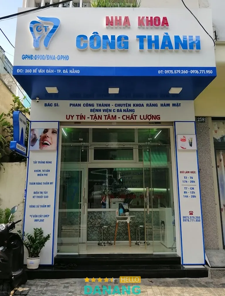Trong số các phòng khám răng hàm mặt tại Đà Nẵng, Nha khoa Công Thành là một địa chỉ được nhiều người dân khu vực Thanh Khê lựa chọn nhờ đội ngũ bác sĩ có chuyên môn, quy trình điều trị bài bản và định hướng phục vụ tận tâm. Với giấy phép hoạt động rõ ràng và thông tin chuyên môn minh bạch, phòng khám đang dần khẳng định uy tín trong lĩnh vực nha khoa.