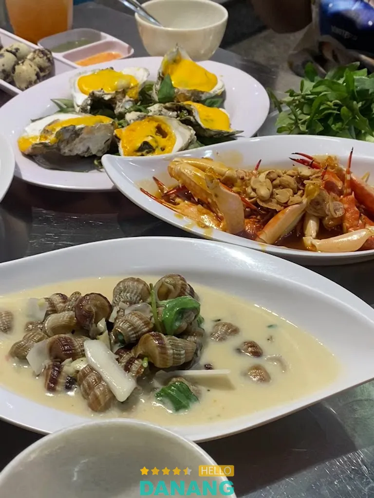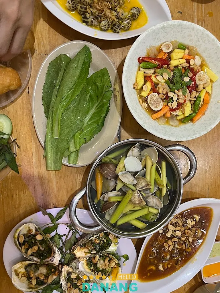 Ngoài ra, quán còn phục vụ nhiều món hải sản nhỏ khác như nghêu hấp, sò điệp nướng, càng ghẹ rang me… tạo cảm giác phong phú và không hề nhàm chán. Mỗi món ăn đều được chế biến theo khẩu vị đậm đà, cay nồng đặc trưng của Đà Nẵng – khiến bạn chỉ cần nếm một lần là nhớ mãi.